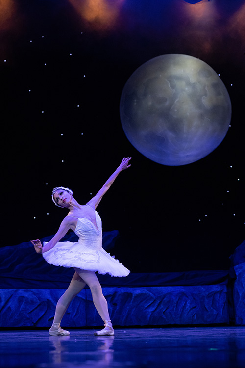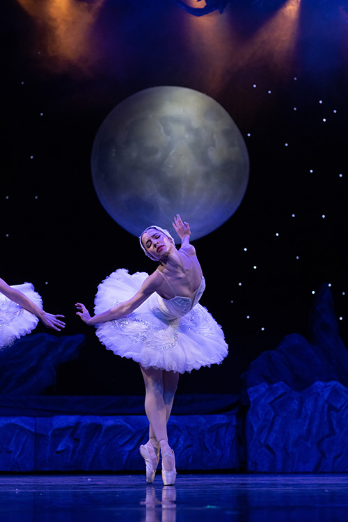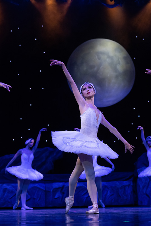 La presentación cautivó a todo el recinto con su romance y belleza. El Lago de los Cisnes relata un amor imposible entre el príncipe Siegfried y Odette, una joven reina convertida en cisne por el hechizo del malvado brujo Rothbar. Odette sólo puede recuperar su forma humana por la noche y únicamente será liberada del hechizo por aquel que le prometa amor eterno.