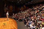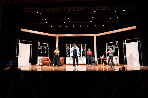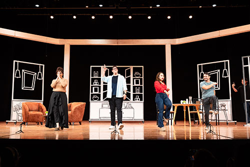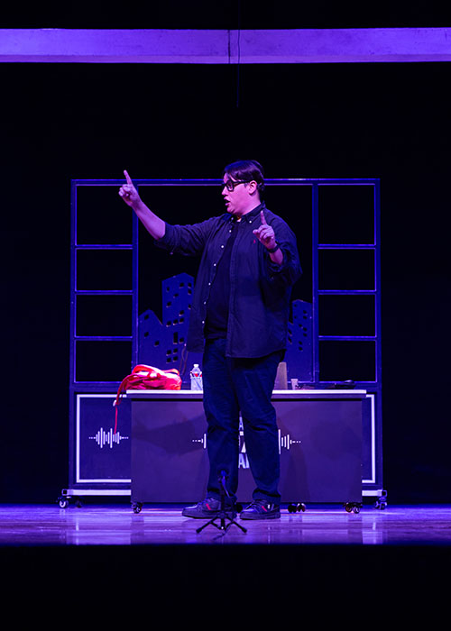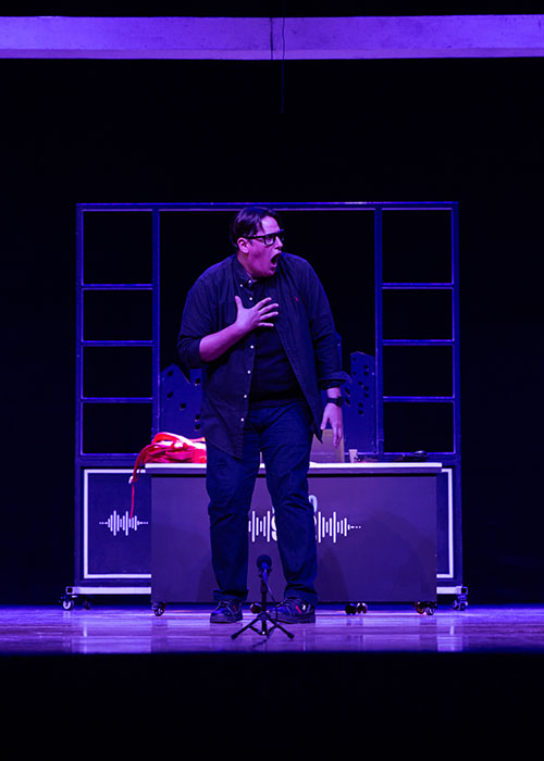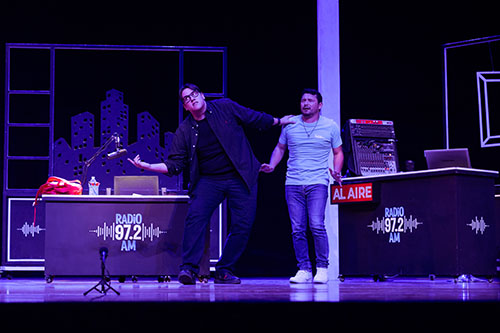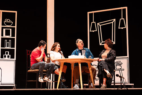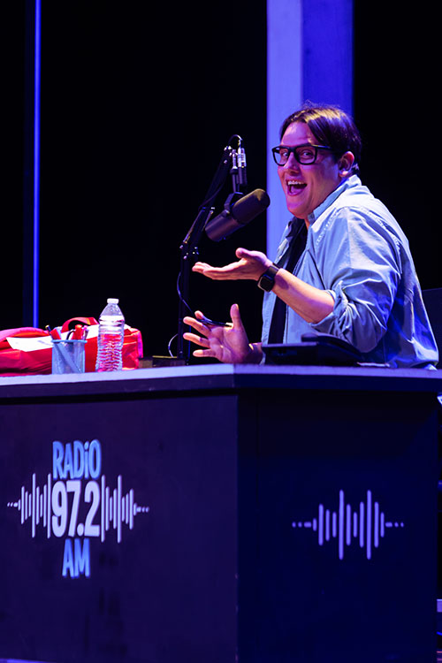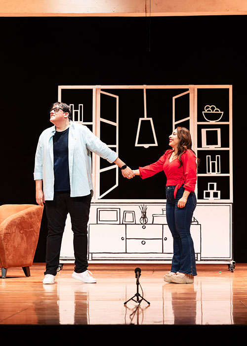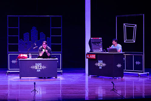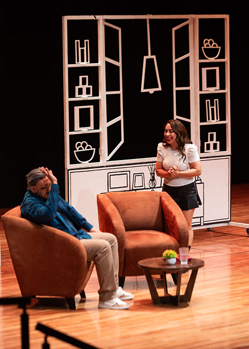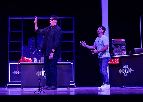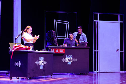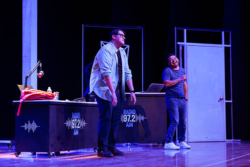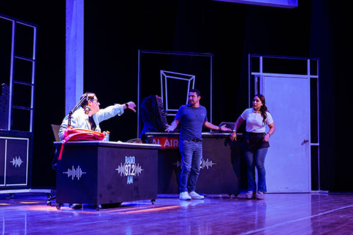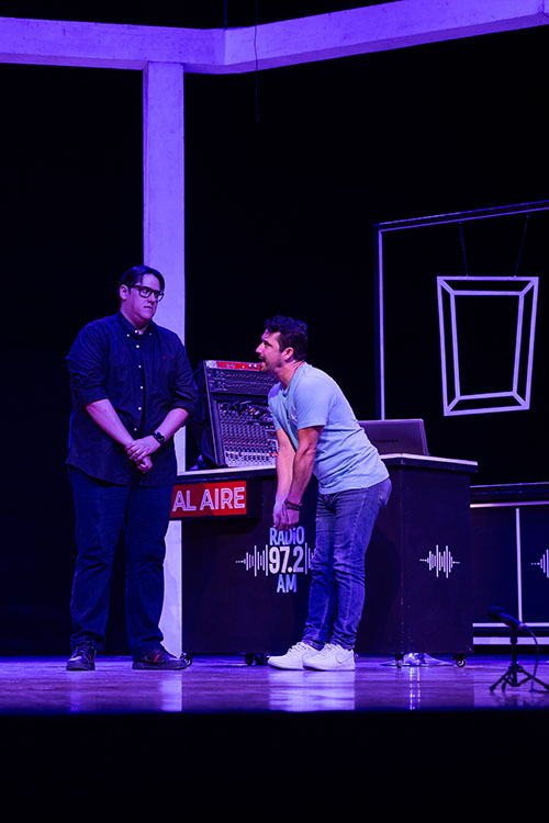 Durante los días 12 y 13 de mayo, el Teatro Nova se llenó de risas y aplausos con tres funciones completamente llenas. El público ovacionó de pie una historia que combina humor y reflexión, y que narra la vida de Timoteo, un joven locutor que finge llamadas en su programa hasta que una llamada real cambia el rumbo de su historia.